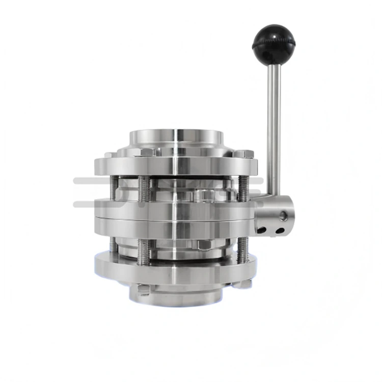 ສຸຂາພິບານ 3-Piece Butterfly Valve ມີໂຄງສ້າງສາມຊິ້ນແບບຄລາສສິກ, ປະກອບດ້ວຍຕົວວາວກາງ, ສອງ flanges ເຊື່ອມຕໍ່ຫຼື clamps ທັງສອງດ້ານ, ແລະແຜ່ນປ່ຽງພາຍໃນ, ລໍາຕົ້ນ, ແລະປະທັບຕາ. ເມື່ອປຽບທຽບກັບວາວ butterfly ປະສົມປະສານ, ປະໂຫຍດທີ່ໃຫຍ່ທີ່ສຸດຂອງມັນແມ່ນ disassembly ສໍາເລັດ. ການບໍາລຸງຮັກສາແລະການທໍາຄວາມສະອາດບໍ່ຈໍາເປັນຕ້ອງ disassembled ທໍ່ທັງຫມົດ; ພຽງແຕ່ການພວນຕົວຍຶດຫຼື bolts ທັງສອງສົ້ນຊ່ວຍໃຫ້ເຮັດຄວາມສະອາດຢ່າງລະອຽດ, ການຂ້າເຊື້ອ, ແລະການທົດແທນຊິ້ນສ່ວນທີ່ມີຄວາມສ່ຽງ, ຫຼຸດຜ່ອນເວລາພັກຜ່ອນແລະຄ່າໃຊ້ຈ່າຍໃນການບໍາລຸງຮັກສາຢ່າງຫຼວງຫຼາຍ.